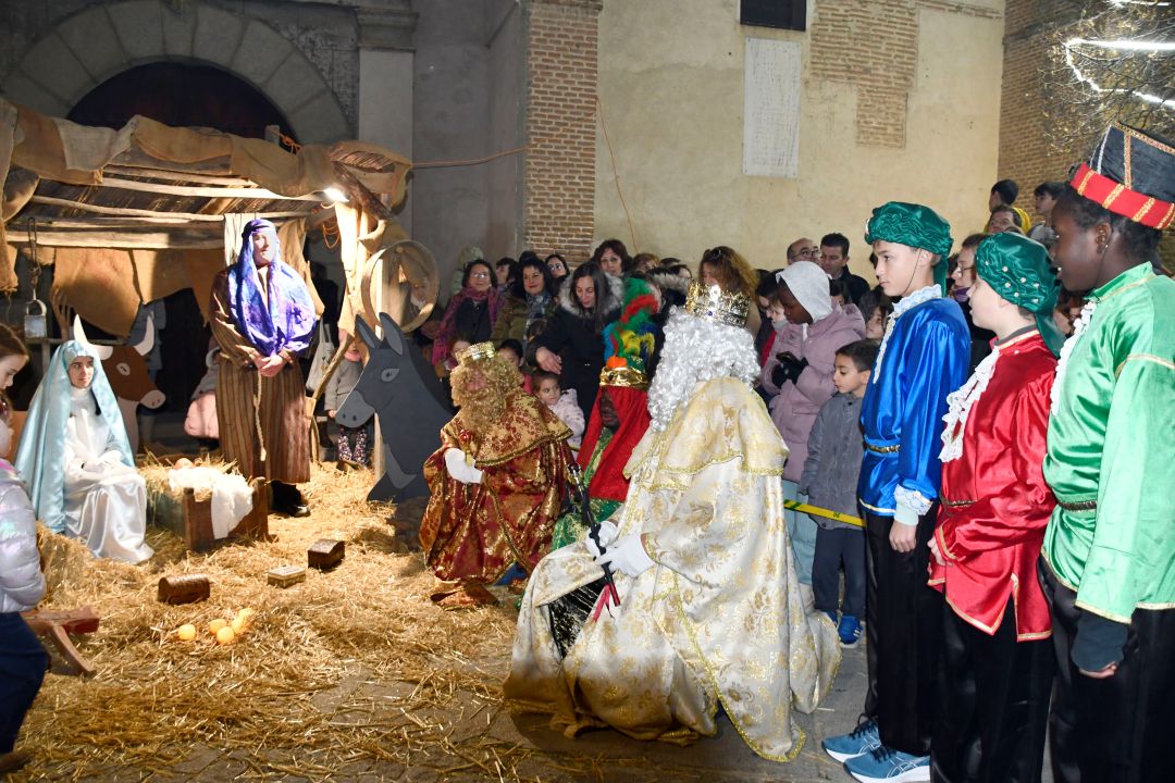 La recreación del Belén viviente, prevista para el pasado 21 de diciembre y que fue suspendida debido a las inclemencias meteorológicas, se llevó a cabo con éxito el pasado domingo 28 en la Plaza Mayor. Esta representación, que atrajo a numerosos vecinos, mostró desde la Anunciación hasta la adoración de pastores y reyes, todo bajo un ambiente navideño muy especial.