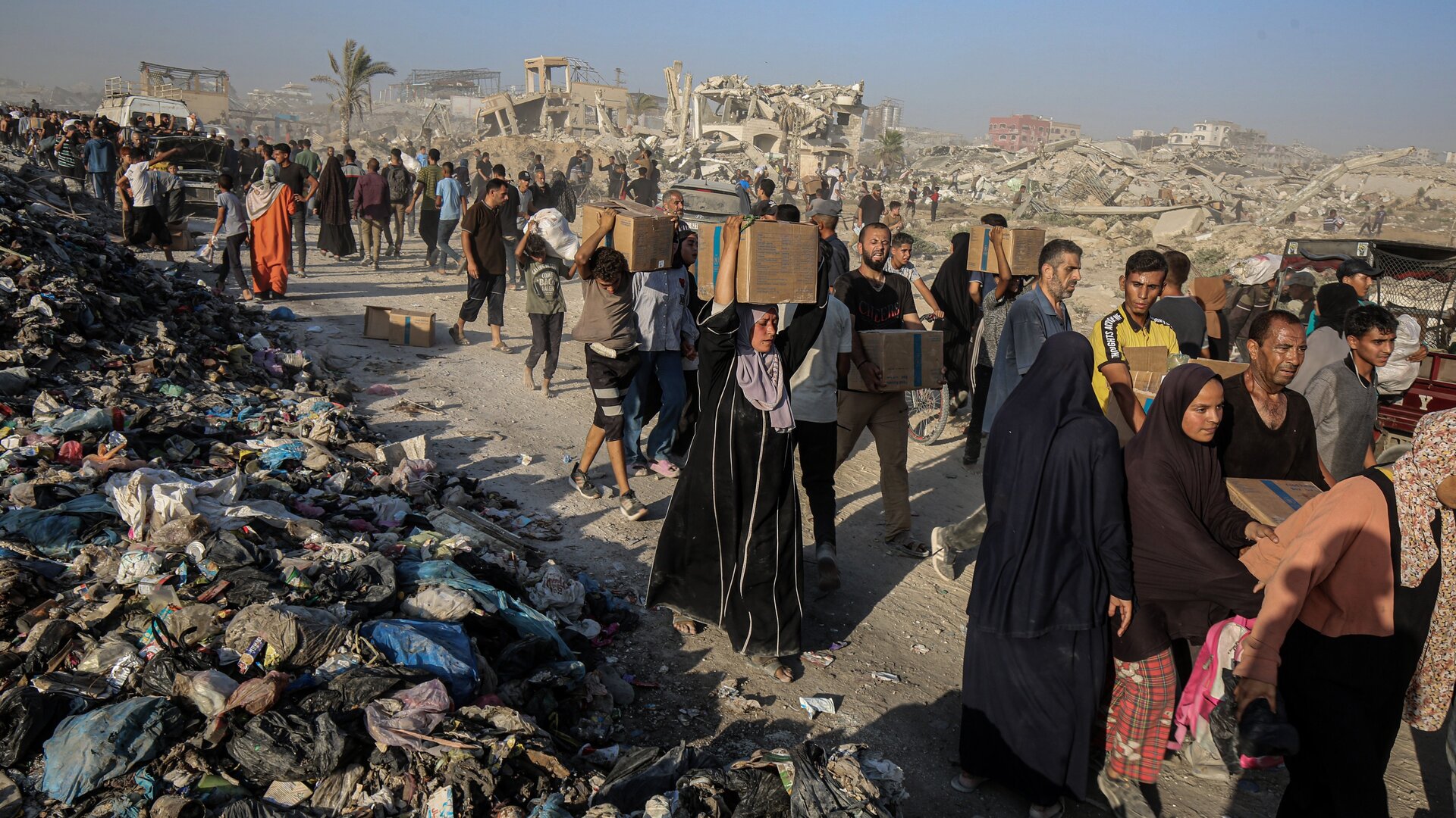 Organizaciones humanitarias han denunciado repetidamente las dificultades para hacer llegar la ayuda a la población civil. Según datos de la Naciones Unidas, entre el 19 de mayo y el 10 de junio solo 6 000 toneladas de ayuda han ingresado a Gaza. Esto equivale al sustento de menos de 300 000 personas durante un mes, teniendo en cuenta los requisitos mínimos diarios de alimentos. Se trata de una pequeña fracción de lo que necesita una población de 2,1 millones de habitantes en Gaza.
